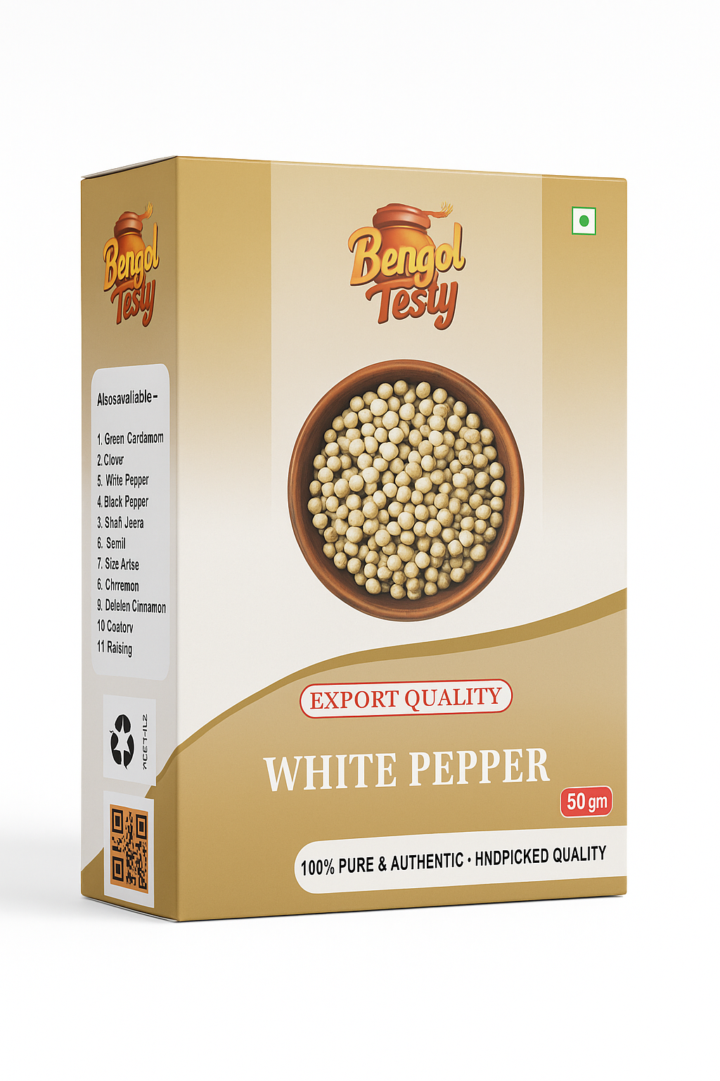 Bengol Testy White Pepper 50g आपको देता है शुद्धता और असली स्वाद का भरोसा।